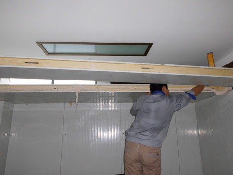 冷庫(kù)墻板拼裝完成,準(zhǔn)備裝頂板,在裝頂板的同時(shí)也是需要先打上發(fā)泡劑,以庫(kù)華冷庫(kù)的密封性,制冷效果好。